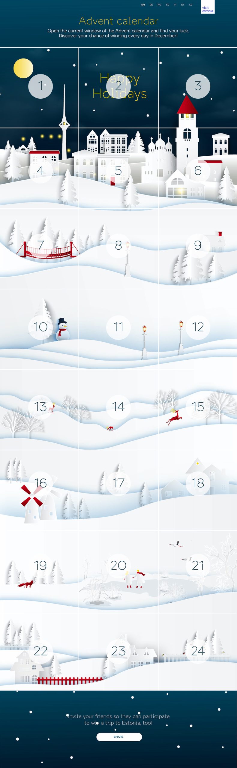 EIS – AdvendikalenderRoll Loovjuhtimine & VeebidisainLisainfo Virtuaalne advendikalender loob piduliku meeleolu pühadeootuses ning jutustab lummava loo Eestist EIS veebilehel ja Instagrami kontol.PREVFoodFulNEXTEIS